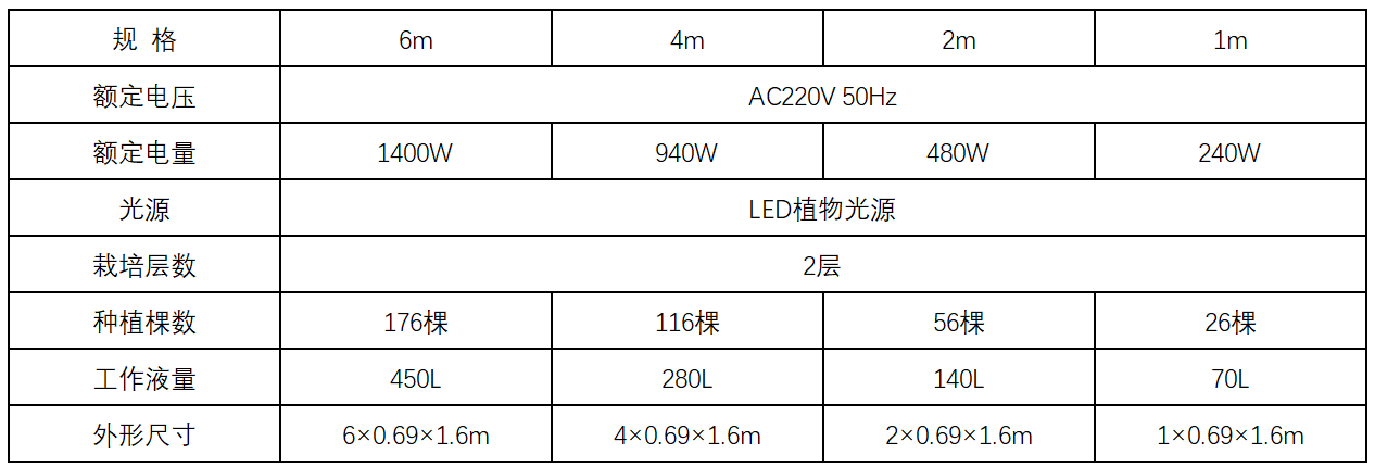適用于室內葉菜類蔬菜的水耕栽培。可應用于植物工廠規模化生產、家庭葉菜園、科研教學、商用展示等領域。